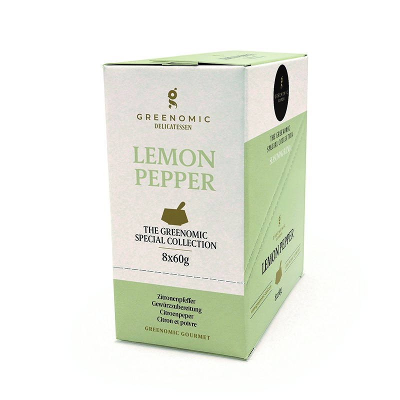Sel marin, zestes de citron (27 %), poivre noir (23 %), sucre, curcuma. Dénomination commerciale : Citron et poivre
