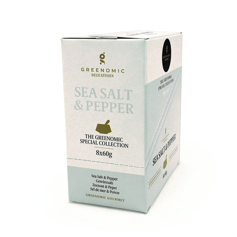 Sea salt (70%), black pepper (30%). Sales description: Sea salt and pepper